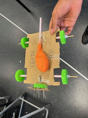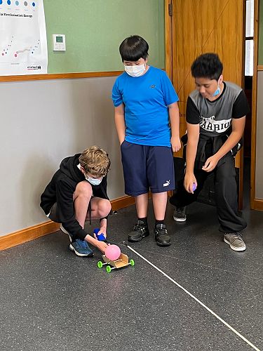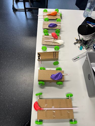 The class aims to show students how scientists work, using the citizen science capabilities. To wind up the term, students worked in groups to build a model car out of a common set of materials. They competed with each other to see which design would travel the farthest distance.