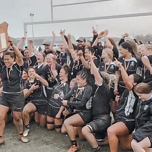 Visit this articleAlumni and Black Fern Kilisitina Moata'ane shown holding the winning shield.