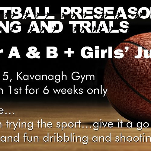 Visit this articleCalling all Senior A/B and Jnr A Girls, we are running a 6 week preseason session which is open to anyone who would like to give Basketball a go. It begins on Friday the 1st of March in the Kavanagh Gym from 3.15-4.15pm.