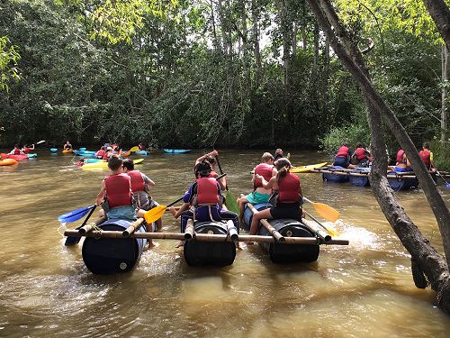 After setting up our cabins we enjoyed raft building, a camp surviving task, slip 'n' slides, swimming in the pool, crate stacking, rock climbing and go karts.