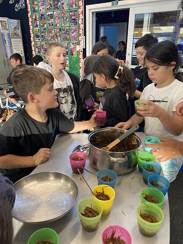 For Samoan Language week Room 12 spent time immersing ourselves in as much of the Samoan culture as possible. We created a class Siapo or tapa cloth using traditional designs, learnt a new game called Lape which is similar to kickball and created a class cookbook which included some Samoan meaai (food). We ended our week filling our tummies with chop suey. Yum!