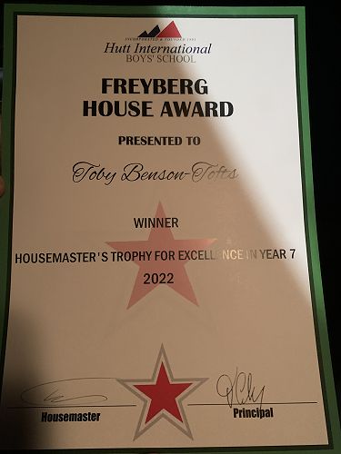 Congratulations to ex KURA kid Toby Benson-Tofts who won the Housemaster's trophy for excellence in Year 7 at Hutt International Boys School. We are so proud of you Toby!