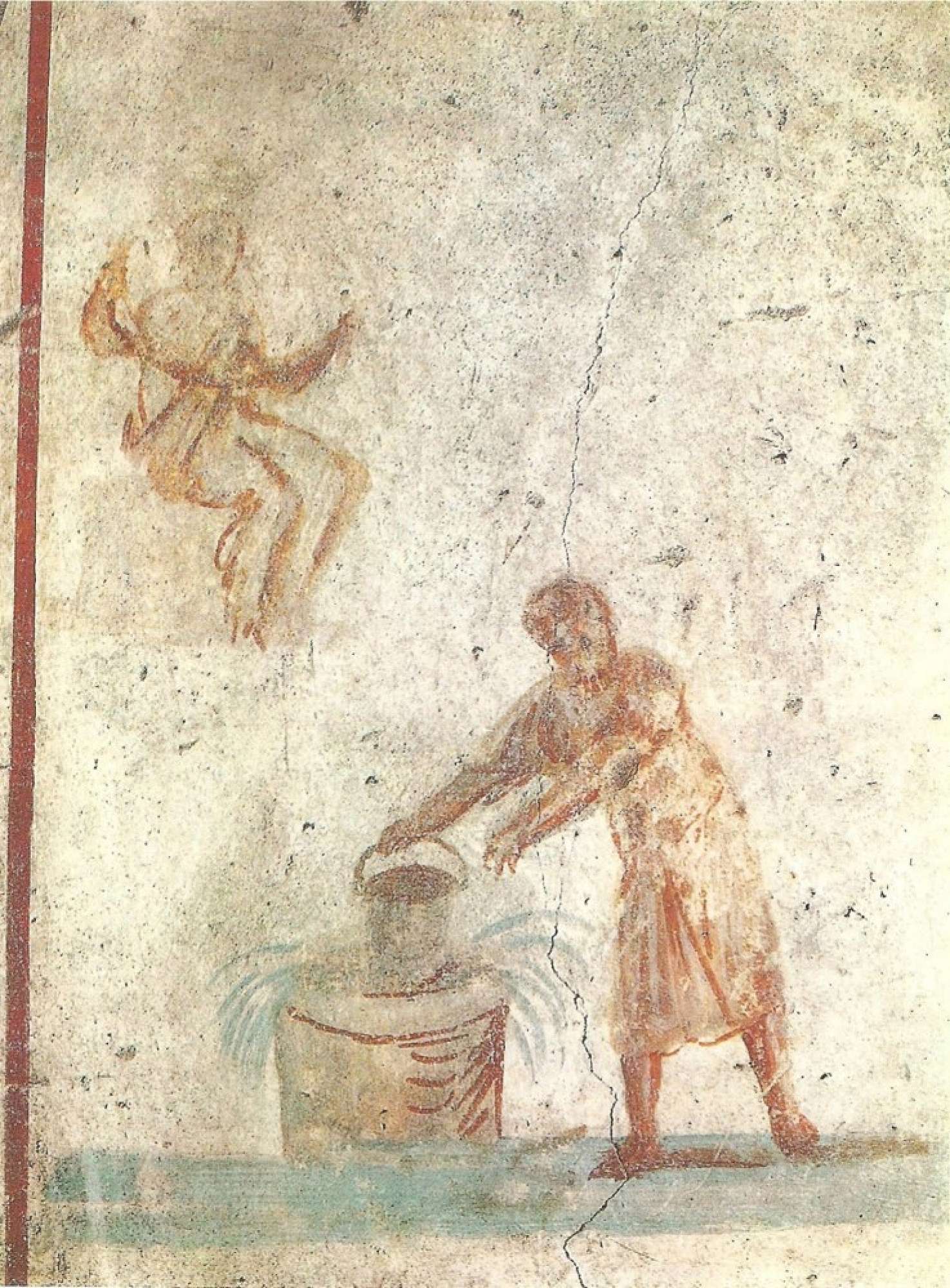 The scene of the Samaritan woman meeting Jesus at the well in John 4:4-45 is found often in early Christian art. This woman, whom I shall call Photini as she is known in the Eastern Church, became a symbol for baptism and the “living water”, the new life which Jesus promises. In a third-century fresco in the Catacomb of St Callistus, Photini is pictured bucketing water from an overflowing well. I shall focus on three aspects of the story: the water, the woman and Jesus’s invitation.