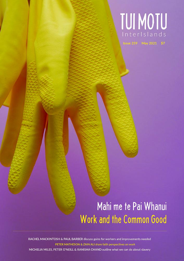 The May 2021 issue was on the theme of Work and the Common Good / Mahi me te Pai Whanui. DesignerJane Maisey RSJ visited Tui Motu Office and gave us advice on improving our magazine cover design.