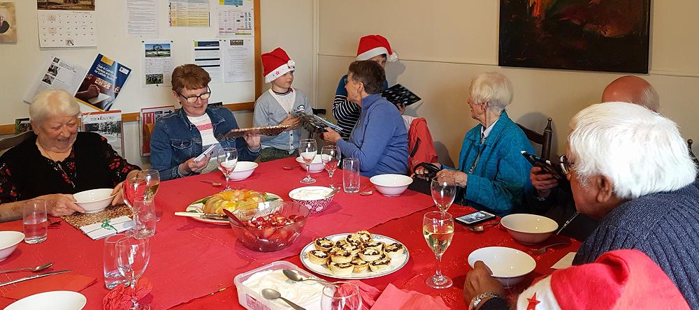 As well as our usual celebratory morning teas for volunteers after we have labelled the envelopes and packed the magazines for posting, we hosted a sit-down Christmas dinner for our Dunedin volunteers. This year because of the pandemic we did not invite families and friends as we have in other years. Nevertheless it was a festive and delicious thanksgiving — a Tui Motu eucharist! Ann Hassan's sons also joined enthusiastically in the hosting.