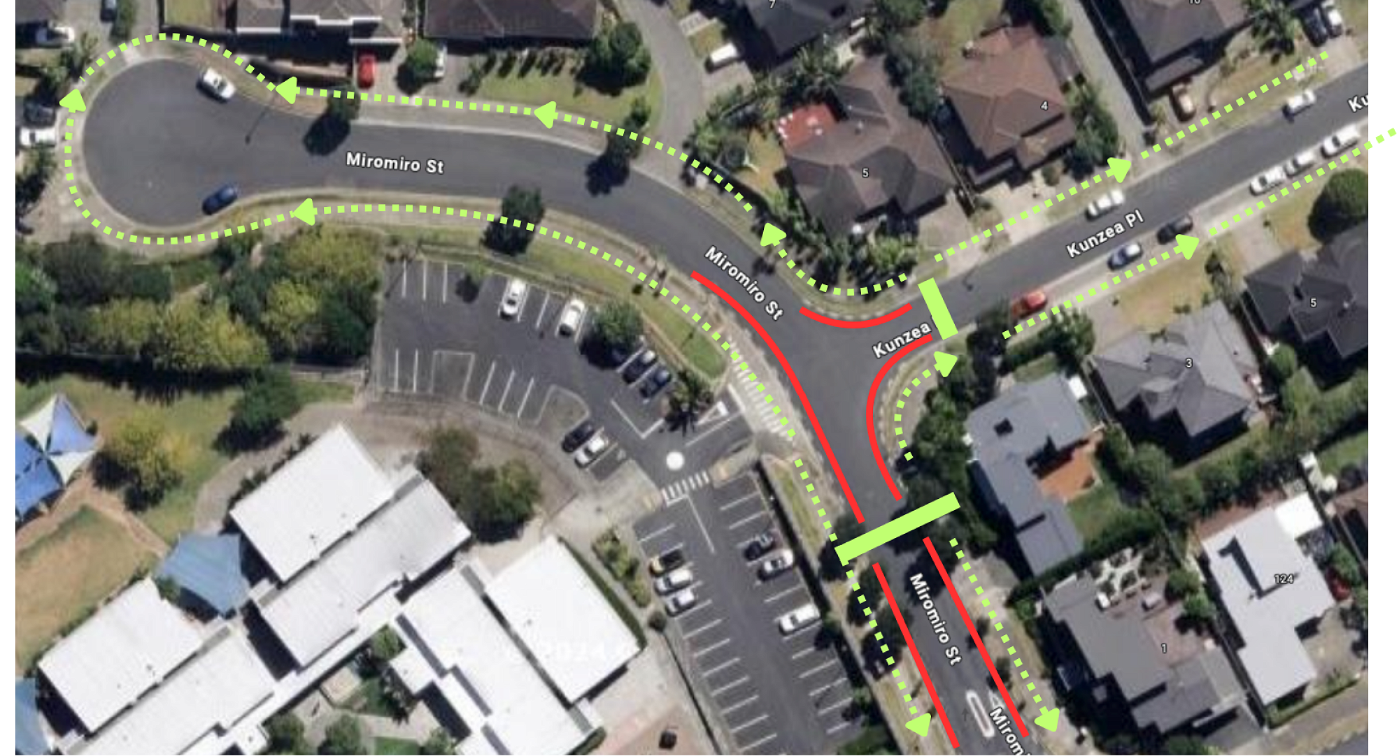 Please find the above map and instructions that outline our expectations for parents and children when being picked up from school on Miromiro Street and Kunzea Place after school.