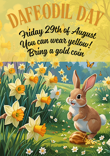 Students can wear yellow on Friday 29th August and bring a gold coin to school.