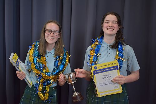 The major award of the morning, The Upper Hutt College PTA President's Cup, was jointly awarded to Olivia Trevean and Aryanna Billington (pictured above).