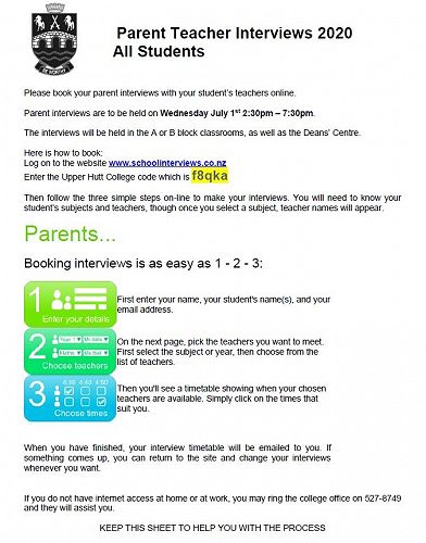 Parent Interviews for all students will be held on Wednesday 1 July, from 2.30pm – 7.30pm. School will close at the end of Period 4 (1.25pm) to allow teachers to prepare.