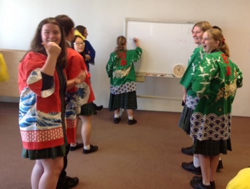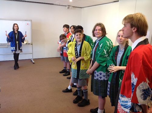 Then, we lined up in two separate groups and whispered a phrase to each other, and when it reached the end of the line, the end person had to run up to the board at the front and write the phrase we heard in either Romaji or Hiragana. We left the Embassy with our heads full of knowledge and our bags filled with a goodie bag each. - Elysia Shaw, 10VH.