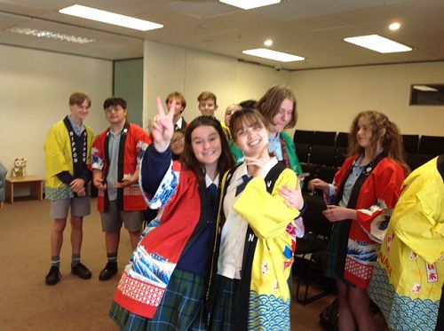 On the last day of Term One, 17 students from Year 10 & 11 Japanese went on a trip to the Japanese Embassy in Wellington. We went to the 18th floor and were ushered into a small room with a view of Wellington Harbour.