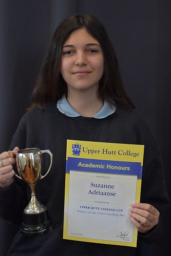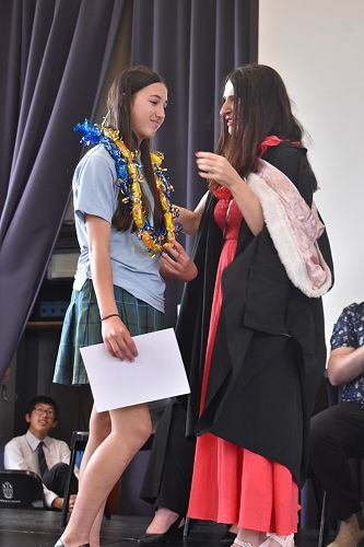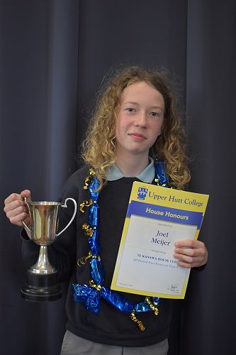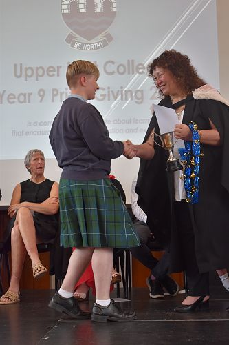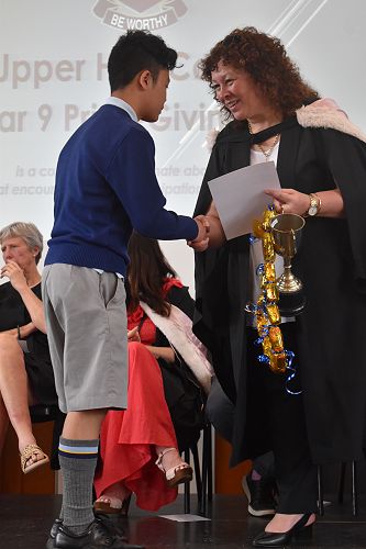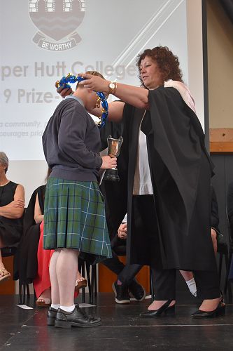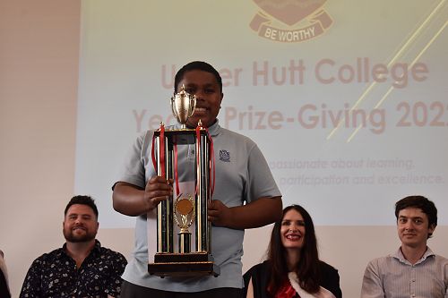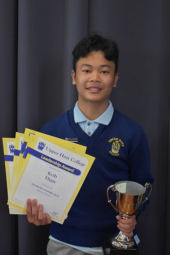 The major award of the morning was The Sir Edmund Hillary Cup, awarded to a Year 9 student for their classroom achievement and their commitment to the core values of Upper Hutt College. This year, it was awarded to Vetri Senthilkumar, but as Vetri was unable to attend, his good friend Ko Than received the award on his behalf.