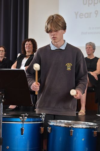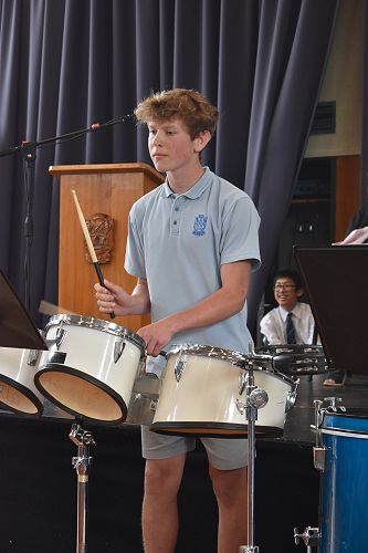 The college hall was packed with the large number of parents, caregivers and whānau who attended the Prizegiving. We all enjoyed one of the highlights of the morning, the performance of the Year 9 Percussion Group - Lucas Warenczuk and Henry Pritchard Glen, accompanied by their tutor, Maurice Phillips.