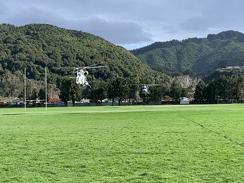 As the helicopters circled overhead, loudly announcing their visit to the Upper Hutt community, and slowly descended to the ground, the phones and cameras were out in full force recording the spectacle. We watched in awe as the helicopters danced around the field, positioning themselves side by side before sinking gracefully to the ground.