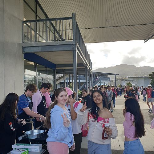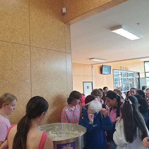 At lunchtime there was a free sausage sizzle and candy floss stand. Pink shirt day was a non uniform day where students were encouraged to wear pink.