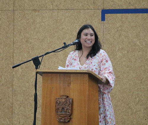 Former Head Girl of 2006, Ms Rachel Empig (nee Espejo), also spoke to the audience, who had packed into the Sports Centre.