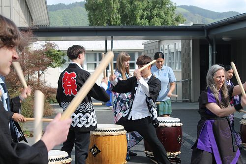 We played a musical piece called ‘Summer festival’ on traditional Japanese drums, called Taiko. We got to try on kimonos, take pictures in the photo booth, and eat snacks while waiting.