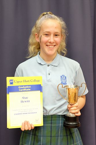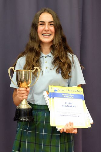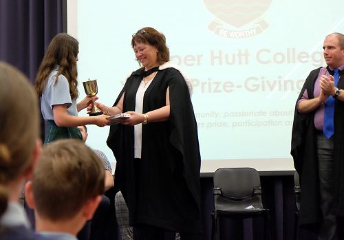 The Sir Edmund Hillary Cup, awarded to a Year 9 student for their classroom achievement and their commitment to the core values of Upper Hutt College went to Emily Blackadder.