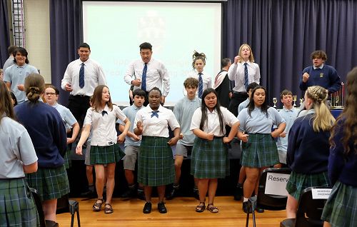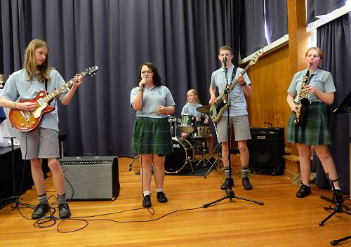 Meanwhile our Year 10 Band, which included Joseph Walker on Bass, Lucy Klee on drums, Grace Seamark on saxophone, Samuel Donaghue on guitar and Vinita Greyling on vocals, performed Jimmy Eat World's hit song 'The Middle'.