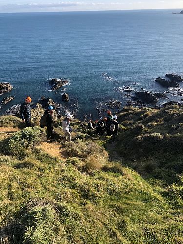 After we were pleased with our efforts and the day was drawing to a close, the tide was coming in, the great rock climbing wizard Pete, and less great rock climbing wizard Mr Weakly, began to voluntell students to help disassemble the climbing equipment. Some had to coil ropes, others had to carry huge packs of coiled rope up the treacherous, devastatingly annoying trail. Said trail gave most students unfortunate flashbacks to the tramp we completed earlier this year, but once we finally got to the summit, although fatigued we were relieved to be on our way home and grateful to be next to such beautiful Aotearoa scenery.