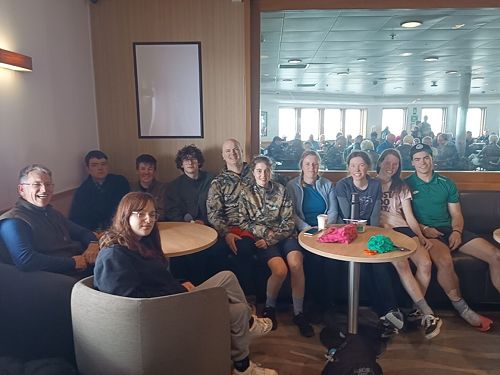 The trip on the ferry over to Picton was a long, grey journey. We met up at the Bluebridge Ferry Terminal around 7:00am to be ready for an 8:15am departure. After checking ourselves and our bags in, we were ready to climb aboard the Bluebridge Ferry. When we made our way onto the ferry, we allocated a meeting place where we could keep any gear and meet up in case of getting lost. We then settled down to wait for the ferry to depart. During the ferry across, from Wellington to Picton we explored the different levels and rooms, as travelling on a Bluebridge ferry was a new experience for most of us. Along the way we were able to enjoy some of Mr Carew’s well-told stories about adventure and some of the ferry's finest cooking. The number of stories told would only increase during the trip! Then finally we made the last leg through the Marlborough Sounds, where we all admired the surroundings, and then finished our ferry crossing in the Bluebridge port.