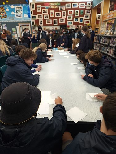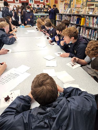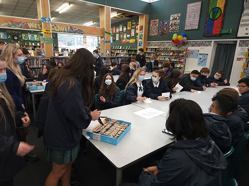 The chocolate cake was crumbly, but delicious and the icing was rich and chocolaty! Thank you to Ms. Cowley for providing us with chocolate cake, thank you to Mr. Beckett and Mr. Awa for providing us with Karakia and song before we ate, and thank you to everyone who joined us to celebrate Matariki in the library!