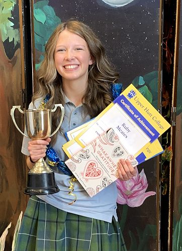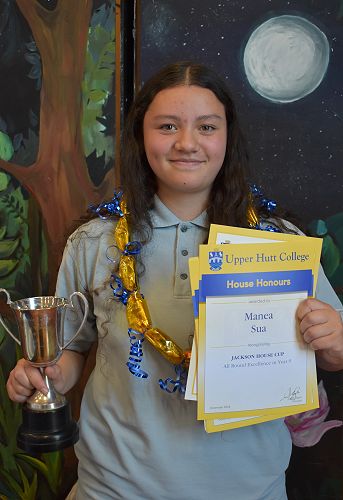 The top Year 9 award is the Sir Edmund Hillary Cup. This is awarded to a Year 9 student for their classroom achievement and their commitment to the core values of Upper Hutt College. This year's recipient is Ruby Meates (9BD).