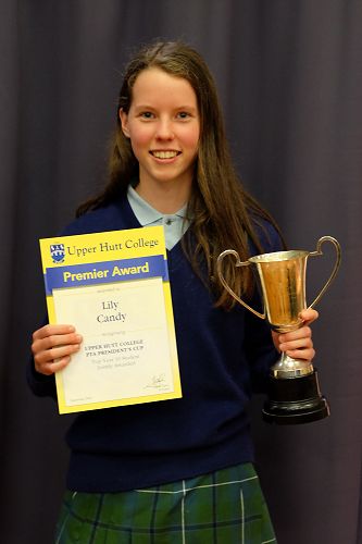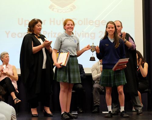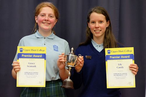 The Upper Hutt College PTA President’s Cup. This is awarded to a Year 10 student for their classroom achievement and their contribution to College life. This year it was a challenge to separate our winners, and in the end, Lily Candy and Grace Seamark couldn’t, as both students are excellent role-models for their peers through their enthusiastic involvement in wider school life be it through sport or cultural activities, their excellent work ethics and academic results.