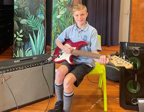 The assembly began with a beautiful guitar piece played by Saul from 9NV (see photo).