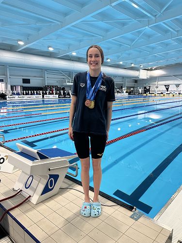 Bridie Quayle - won 6 National titles for 14yr Girls - 200 & 400IM, 50,100 & 200 Breast & 200 Back plus silver in 100 Back and bronze in 50 back