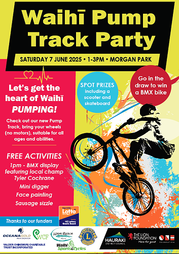 Saturday 7th June, 1-3pm The Waihī Community Forum and Hauraki District Council invite you to the opening of the exciting new Pump Track at Morgan Park.
