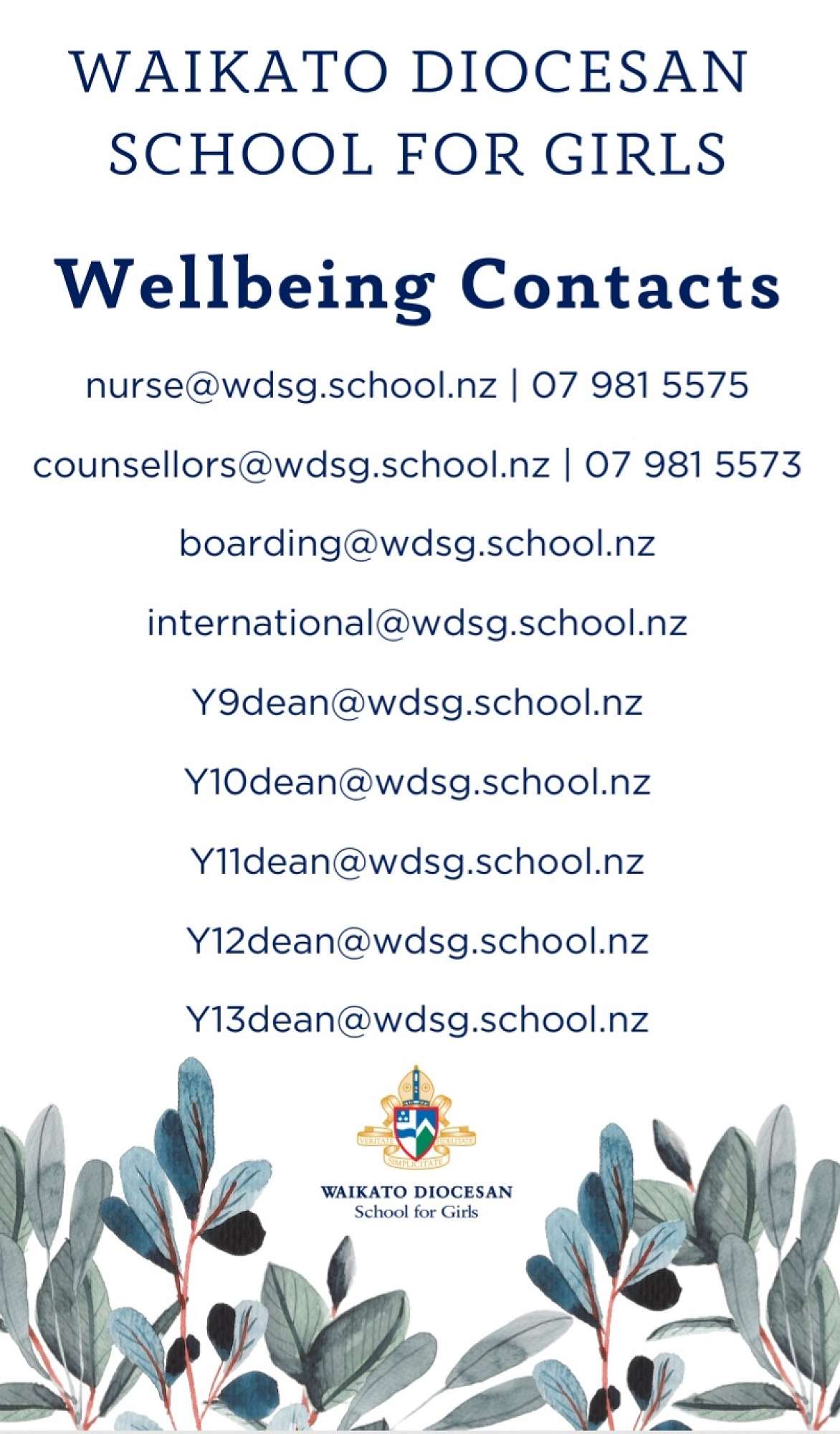 Our pastoral team is led by Mrs Sonja Maree, Associate Principal - Student and School Wellbeing. She is located in Students Services in the Sports Education Centre and can be reached at smaree@wdsg.school.nz