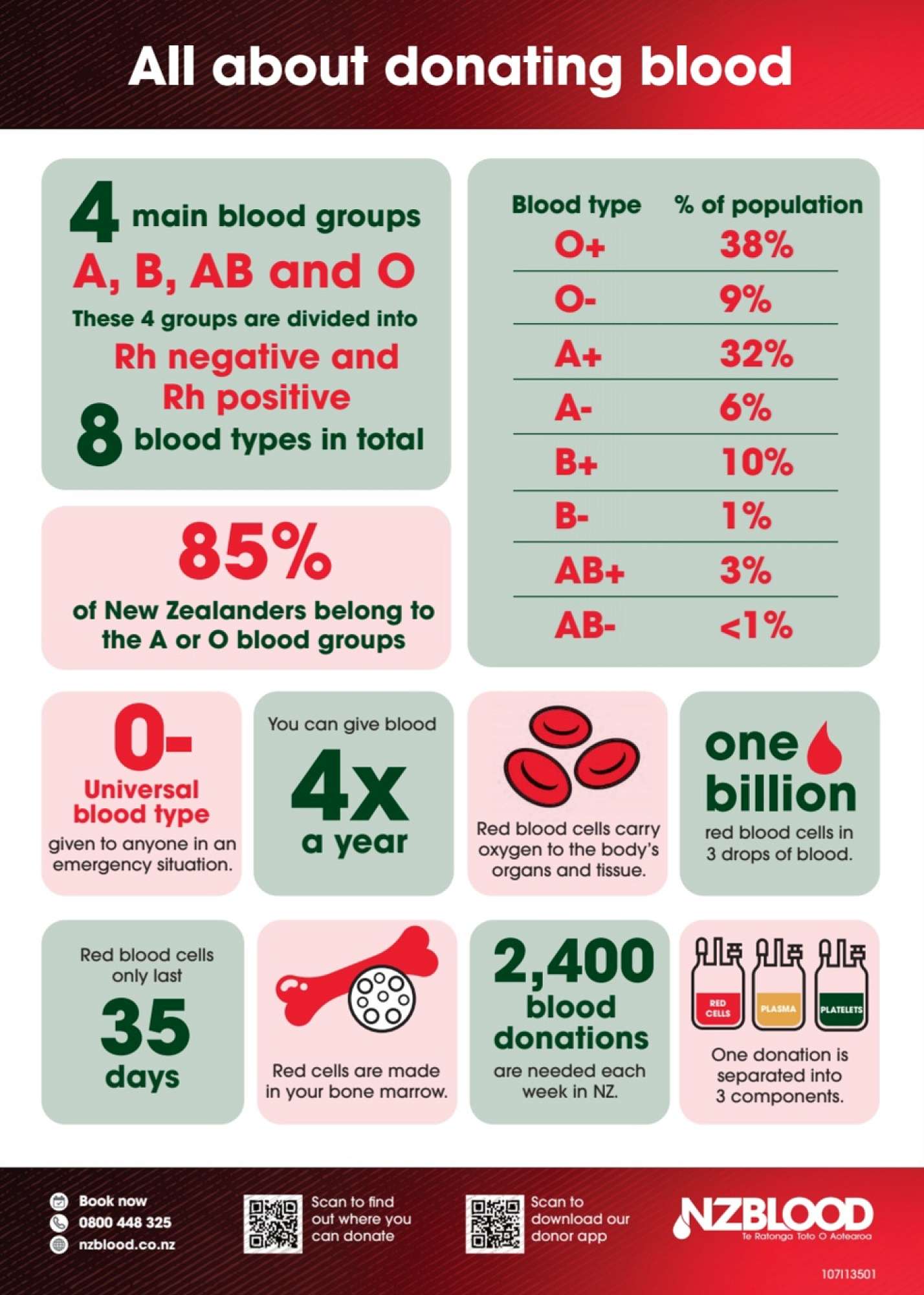 If you have been overseas recently, please refer to the “Donating after Travelling” tool available at www.nzblood.co.nz to find out when you can donate.