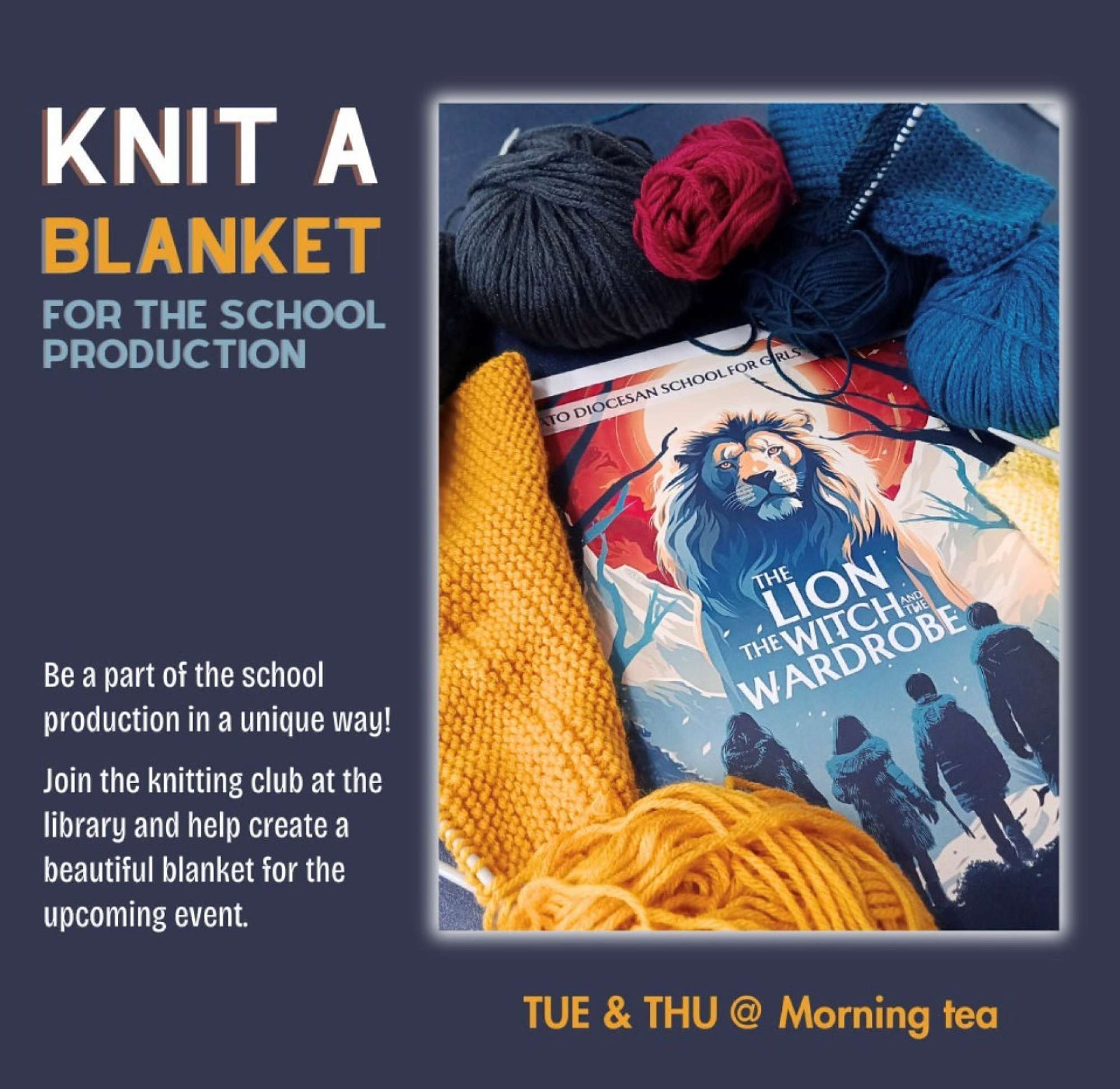 Knit a blanket for the Dio production - every Tuesday and Thursday at morning tea