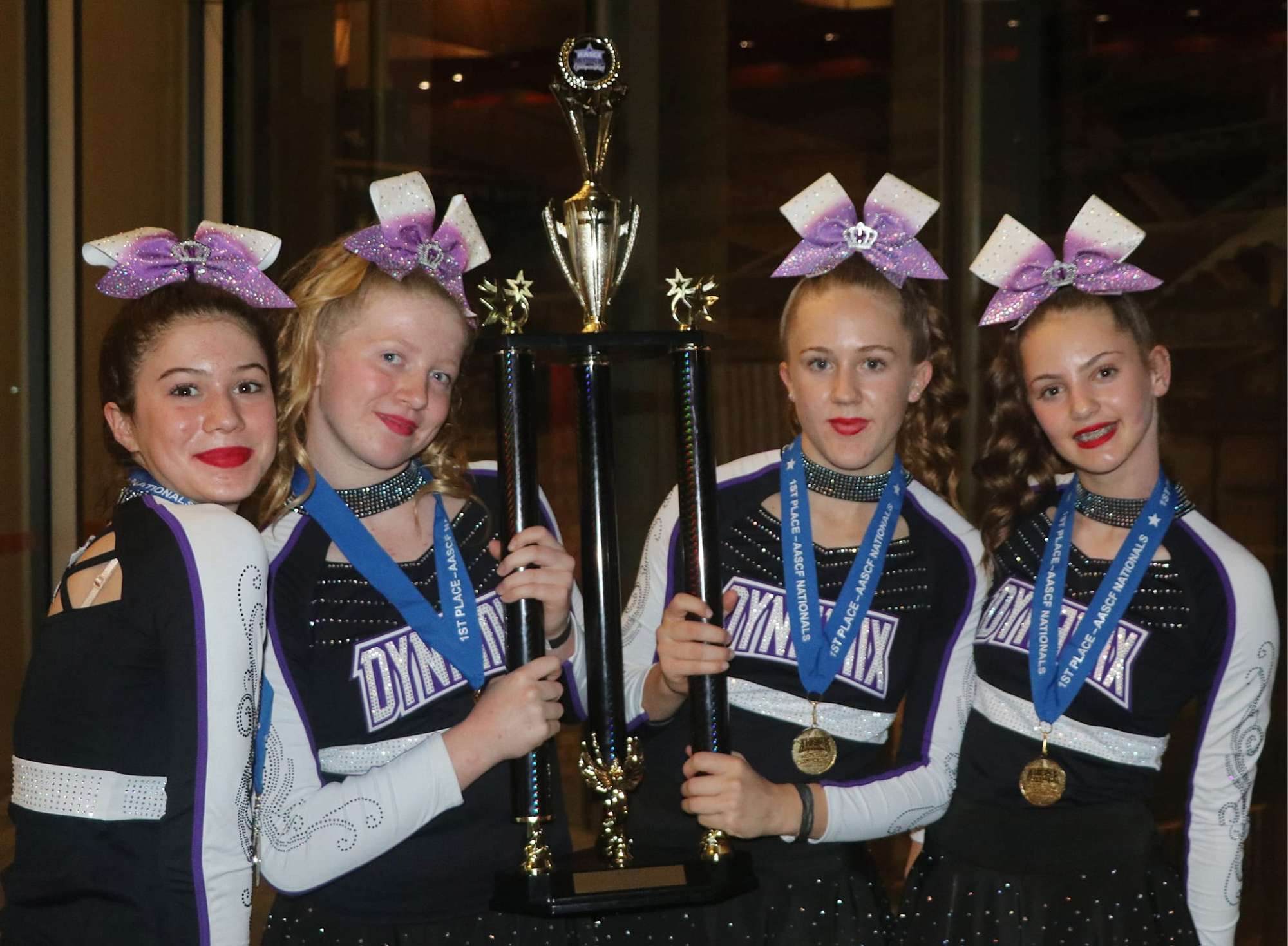 Congratulations to Meg Enerson, Ava O'Hearn, Charli Murphy, and Piper Peart, who were part of the Cheer Dynamix 007 club and competed at the recent Australian All-Star Cheerleading Federation Nationals held in Melbourne, Australia. Cheer Dynamix 007 Aftershock (featuring all four Dio athletes) were crowned Senior level 2 AASCF National Gold Medal Champions. Cheer Dynamix 007 Lightyear (featuring Charli Murphy) were crowned Junior Level 2 AASCF XS National Gold Medal Champions. Great effort, team Cheer Dynamix 007!