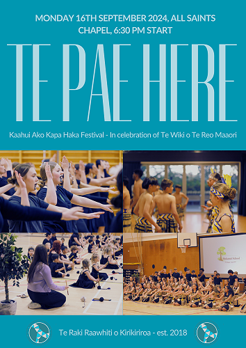 We also have two more events to go as well. On the 16th of September, our roopuu are once again hosting the Te Pae Here Kapa Haka Festival, an event where kindergartens, primary, intermediate and secondary schools part of Te Raki Raawhiti o Kirikiriroa gather together in celebration of Te Wiki o Te Reo Maaori. This will be hosted in the schools’ All Saints Chapel. Kapa haka are also performing at the Arts Showcase, where all of the arts codes at Dio share just a snippet of their mahi from 2024. I look forward to seeing all of our whaanau in attendance at these events in support of our kapa haka and arts students.
