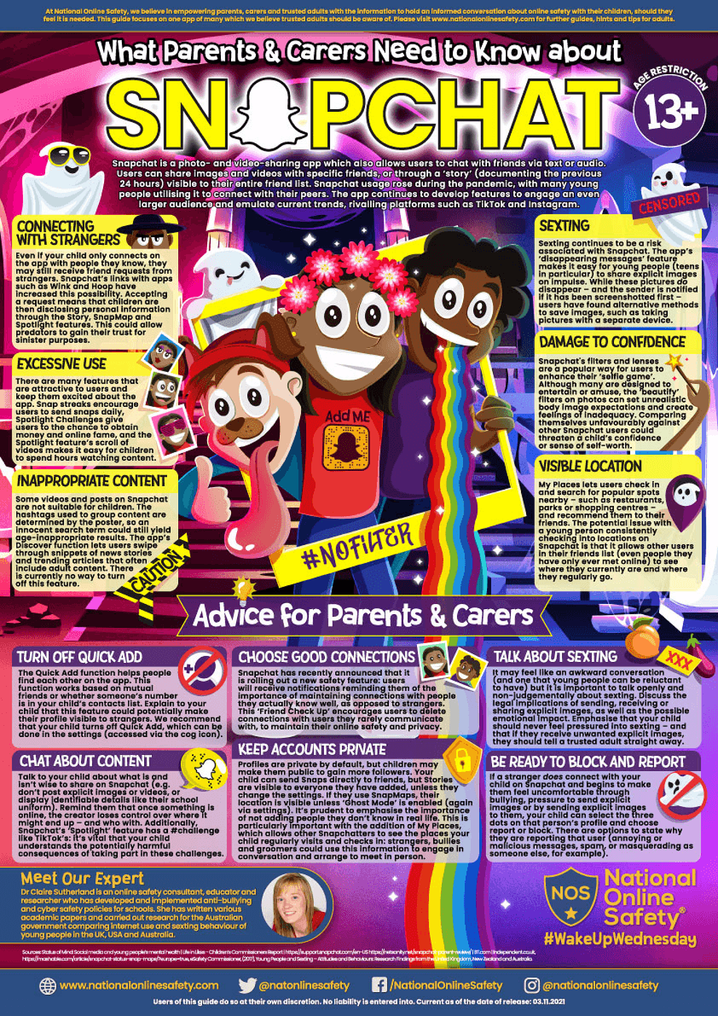 Over the coming weeks we will continue to provide helpful tools, resources and tips around supporting your child with online safety. Snap Chat this week!