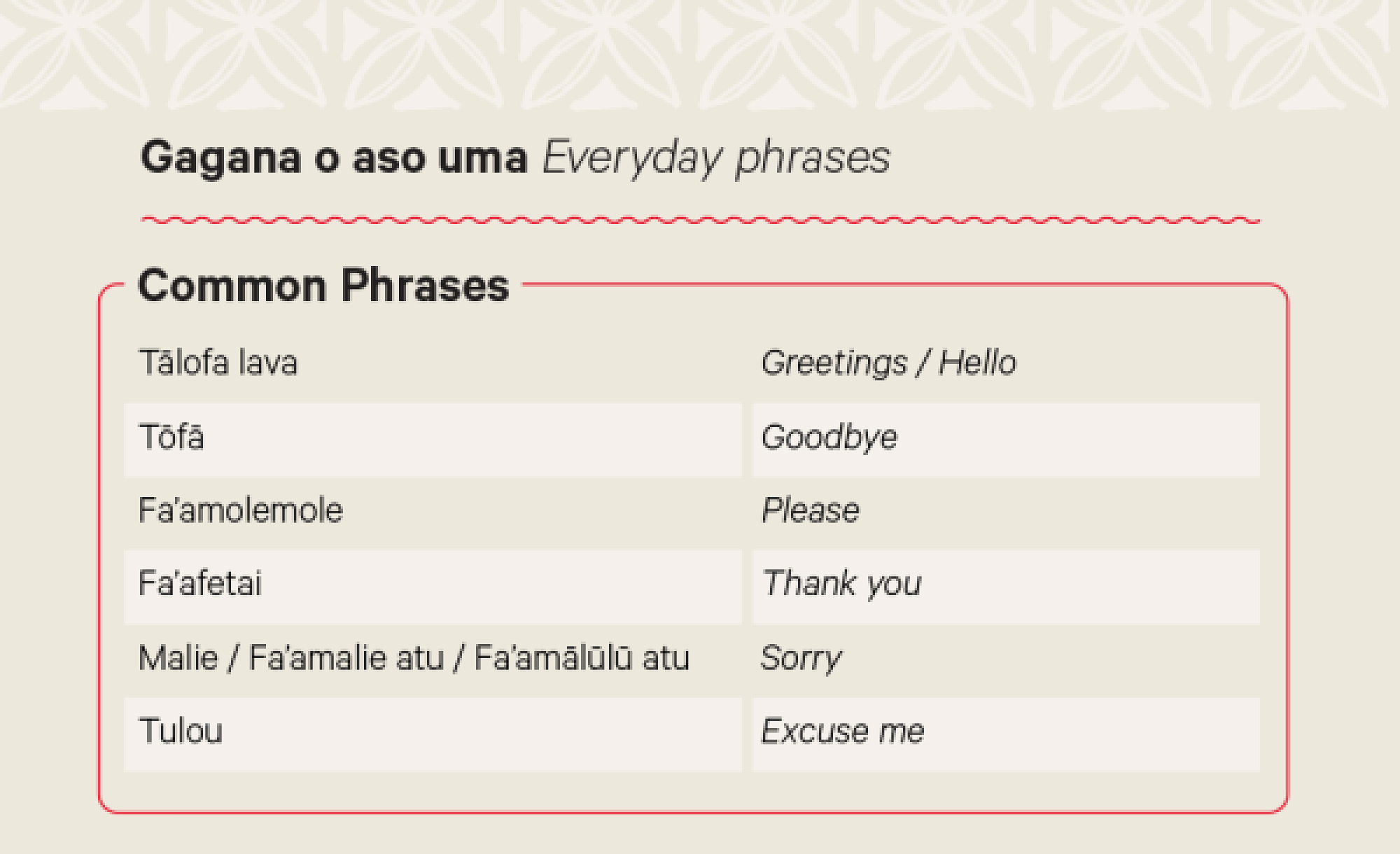 Did you know Gagana Sāmoa is the third most spoken language in New Zealand? Give some of these common phrases a go with friends and family!