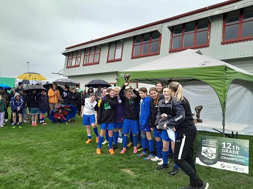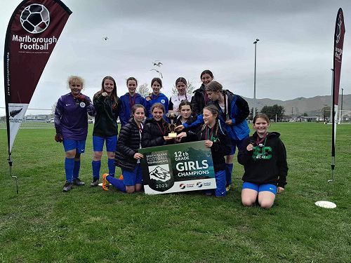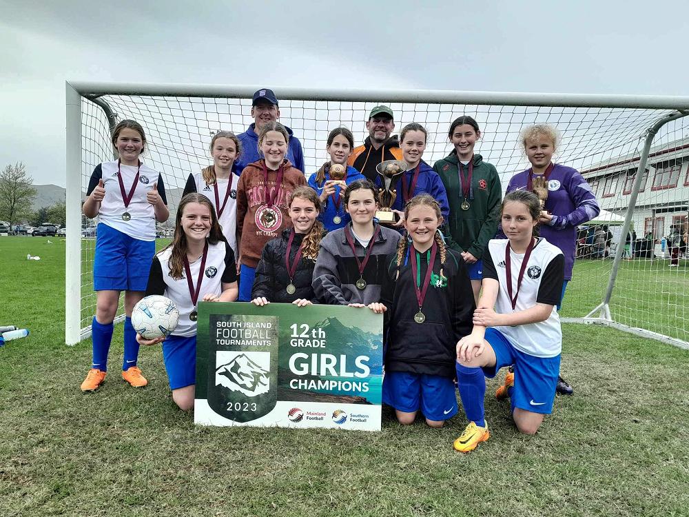 Four Waimate High School girls were selected into the twelve strong Timaru Rep Team - West End AFC- to face the best of the South Island girls football teams. The tournament was held in Blenheim 24-26 September.