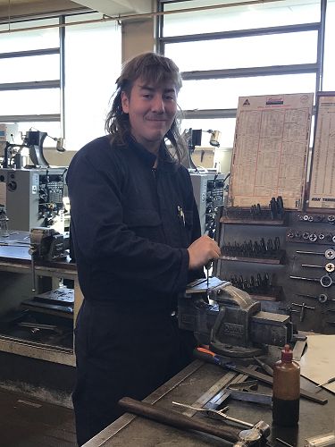 Ara Dual Enrolment Programme student William Charles working on a project in the Ara trades workshop as part of the the Introduction to Agriculture Automotive programme.