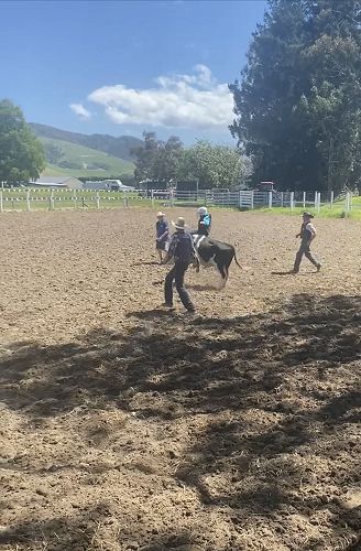 It was fantastic to see students from Waimate High School give steer riding a go.