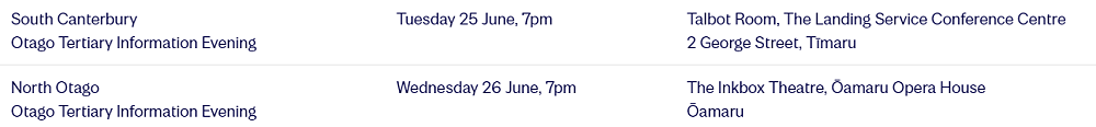 University of Otago & Otago Polytechnic Info Evening for students and whānau in Timaru on 25 June, or in Oamaru on 26 June.