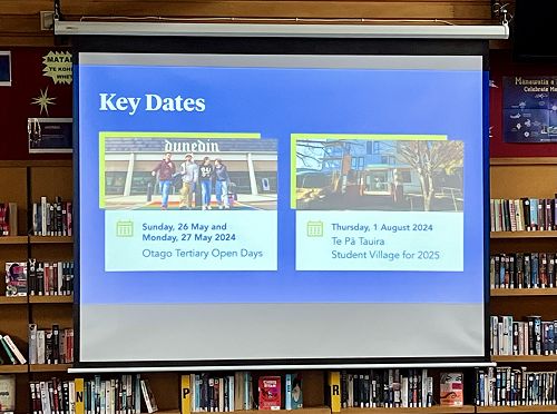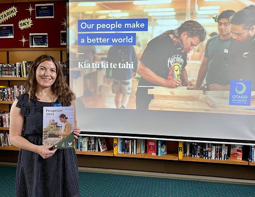 On Wednesday 10 April, Steph Kerslake, Liaison Officer from Otago Polytechnic, visited and gave an interesting and informative presentation about the 180 courses offered at the polytechnic. From architecture, sport, avalanche and snowsports, nursing, occupational therapy (only place this course is available in the South Island), engineering, culinary arts, computing, farming, design, stone masonry, and so much more, there are a plethora of opportunities for students to explore!