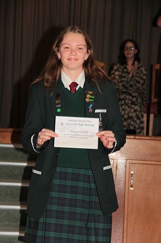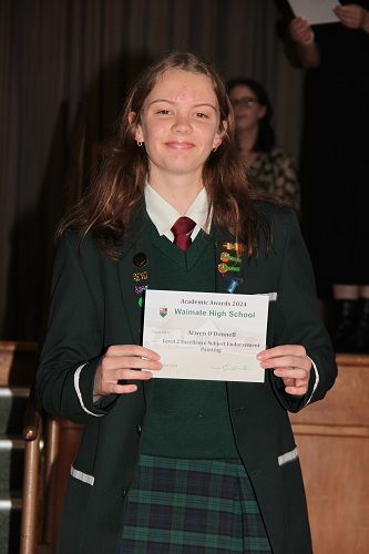 Last week we held our formal Academic Awards assembly. This was an opportunity to recognise our top academic achievers of 2023 and showcase their achievements. Former student and Head Prefect, Niamh O'Donnell was our guest speaker and she gave some powerful messages for all students to take on board. She graduated from Waimate High School in 2017 in Year 13 and was named Dux and received the B. P Blampied Dux Scholarship, The University of Otago Dux Scholarship and she was also awarded the University of Otago Academic Excellence Entrance Scholarship, University of Otago Prestige Scholarship in the Arts, and the Ministry of Defence Freyberg Scholarship to help her towards tertiary study.