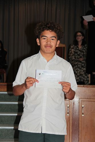 The next students who have achieved NCEA certificate endorsements receive a full colour. They are presented with a WHS certificate and colour badges. They receive a gold badge for endorsements with Excellence and silver for Endorsement with Merit.