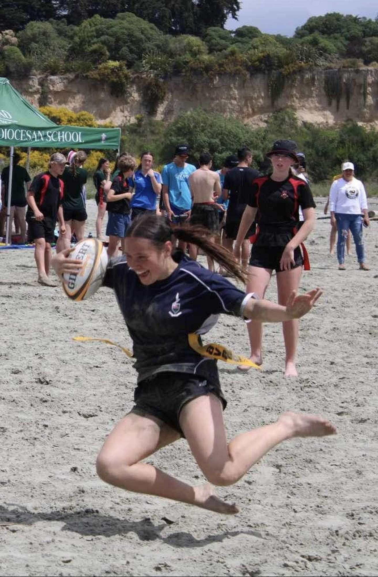 Before the games started there was a fun beach dash along Caroline Bay. Our girls team were undefeated for the day, playing some awesome rippa rugby. Our boys team had some very close games and came away with a good win.