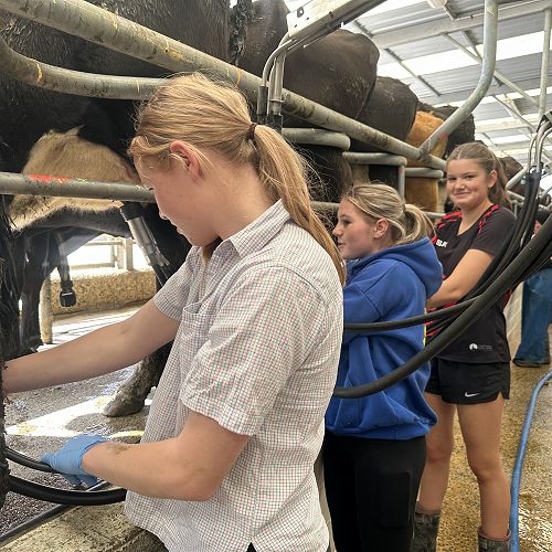 Level 2 and Level 3 Ag Science visited Abby Rawcliffe to find out how she uses Alflex collars to manage cow behaviour on the Dairy Farm. Then she gave them a quick lesson and it was โcups upโ - a great opportunity and the first time in a cowshed for some of our students.