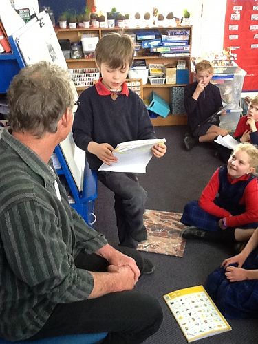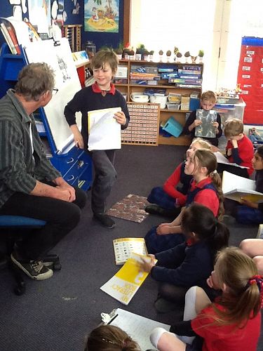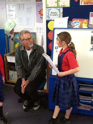 Today we had an exciting day! First we went for a walk around Waimate to locate Mr Scott's paintings, then we had The Arts Walk with Mrs Leanne Sadler around the Silos. We admired the artwork in the morning and in the afternoon we had the privilege of talking to the artist himself- Mr Bill Scott. Mr Scott's story was so fascinating that we ended up being late for the assembly! Now we are looking forward to having a drawing session with Mr Scott in Term 4. Aren't we the luckiest?
