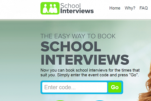This means, Jo Carter will not be calling you to book times. Type in www.schoolinterviews.co.nz/code