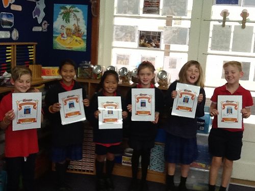 Congratulations to five happy champions Hunter, Reyna, Francine, Natalia and Skye who got their Scoolbo certificates for 1000 correct answers and Archer for 2000 correct answers in Maths.